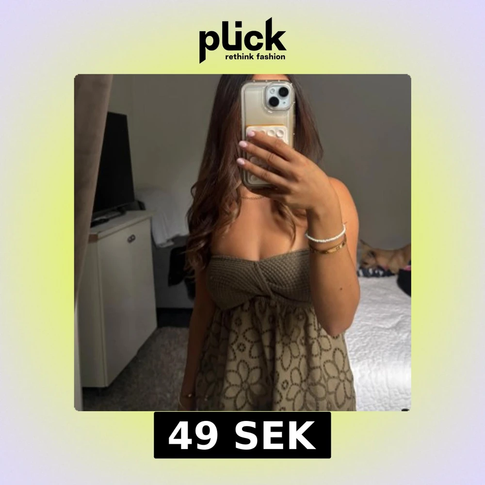 Supersöt mörkgrön axelbandslös topp! med broderade blommor och smock upptill. Toppen har en flowy passform och är perfekt för varma dagar. Materialet känns som bomull och ger en skön känsla mot huden. Snygg att styla med smycken och sandaler.🦋