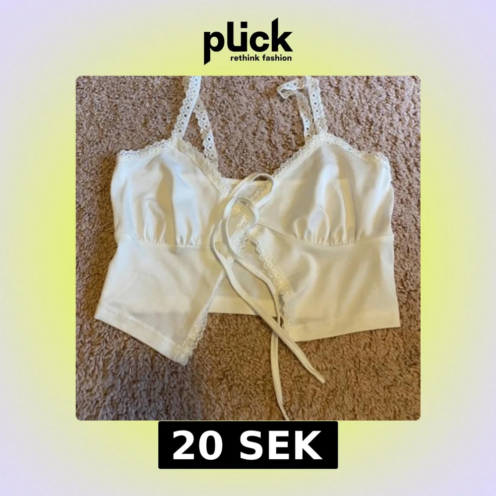 Säljer en söt vit korsettopp med spetsdetaljer och knytning framtill. Toppen har smala axelband och en croppad passform, perfekt för sommarens varma dagar.