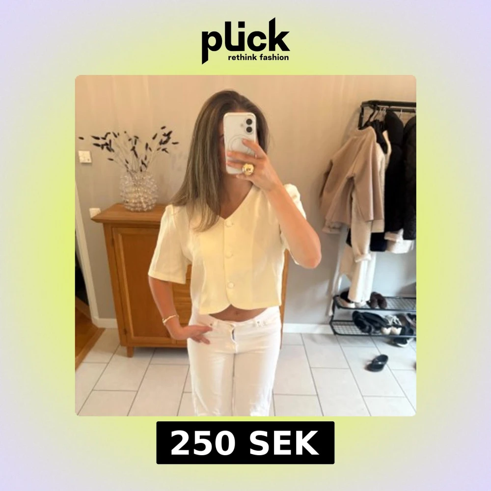 Vit croppad blus med knappar