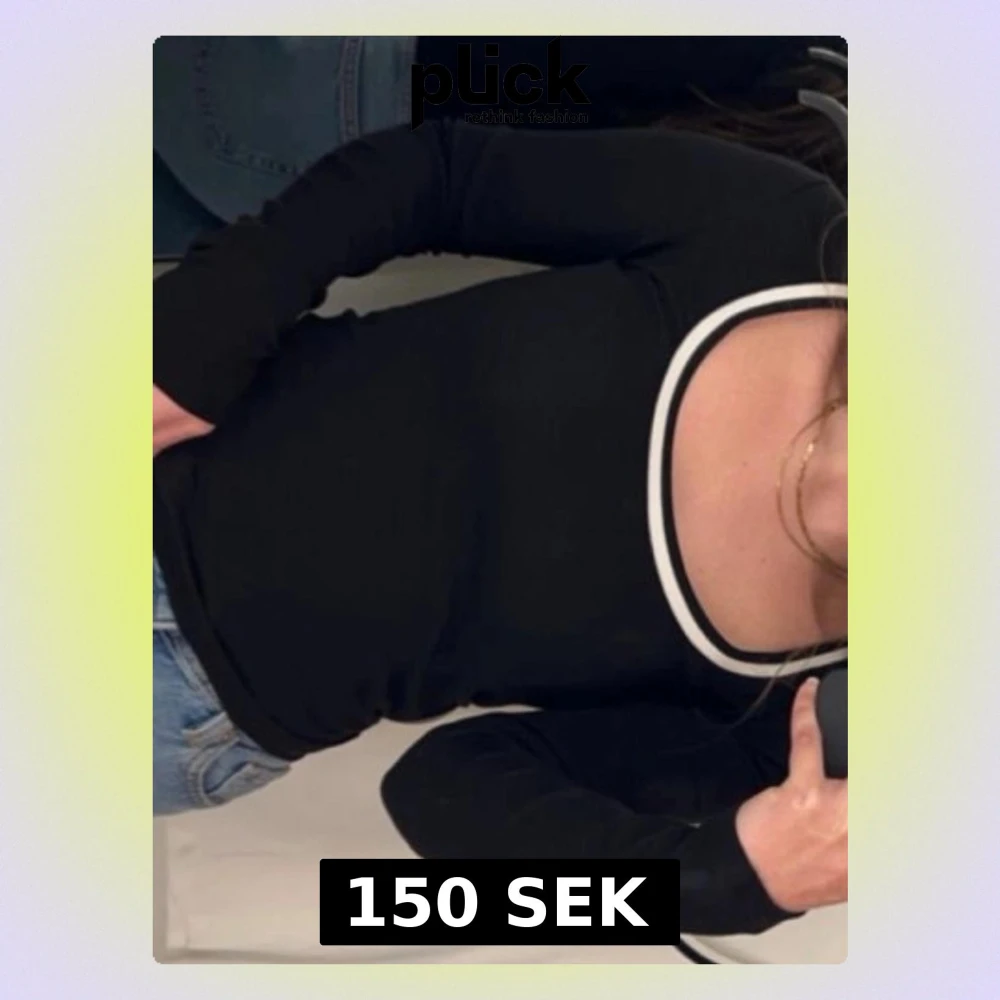 Snygg svart långärmad topp med bred, rund urringning och vit kant runt halsen. Toppen har en slim passform och är tillverkad i mjukt bomullsmaterial.