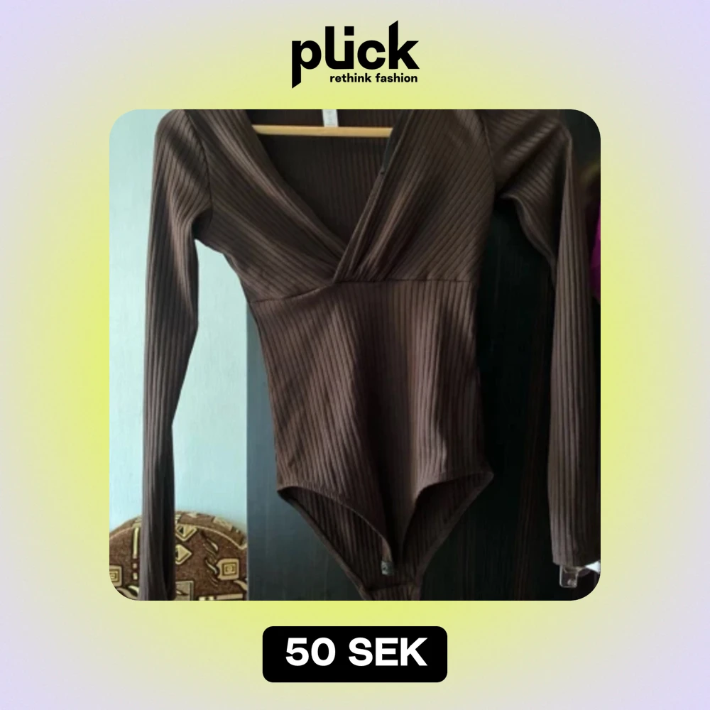 Säljer en snygg brun ribbad bodysuit med v-ringad design. Den har långa ärmar och är perfekt för höst och vinter. Passar både till vardags och fest!