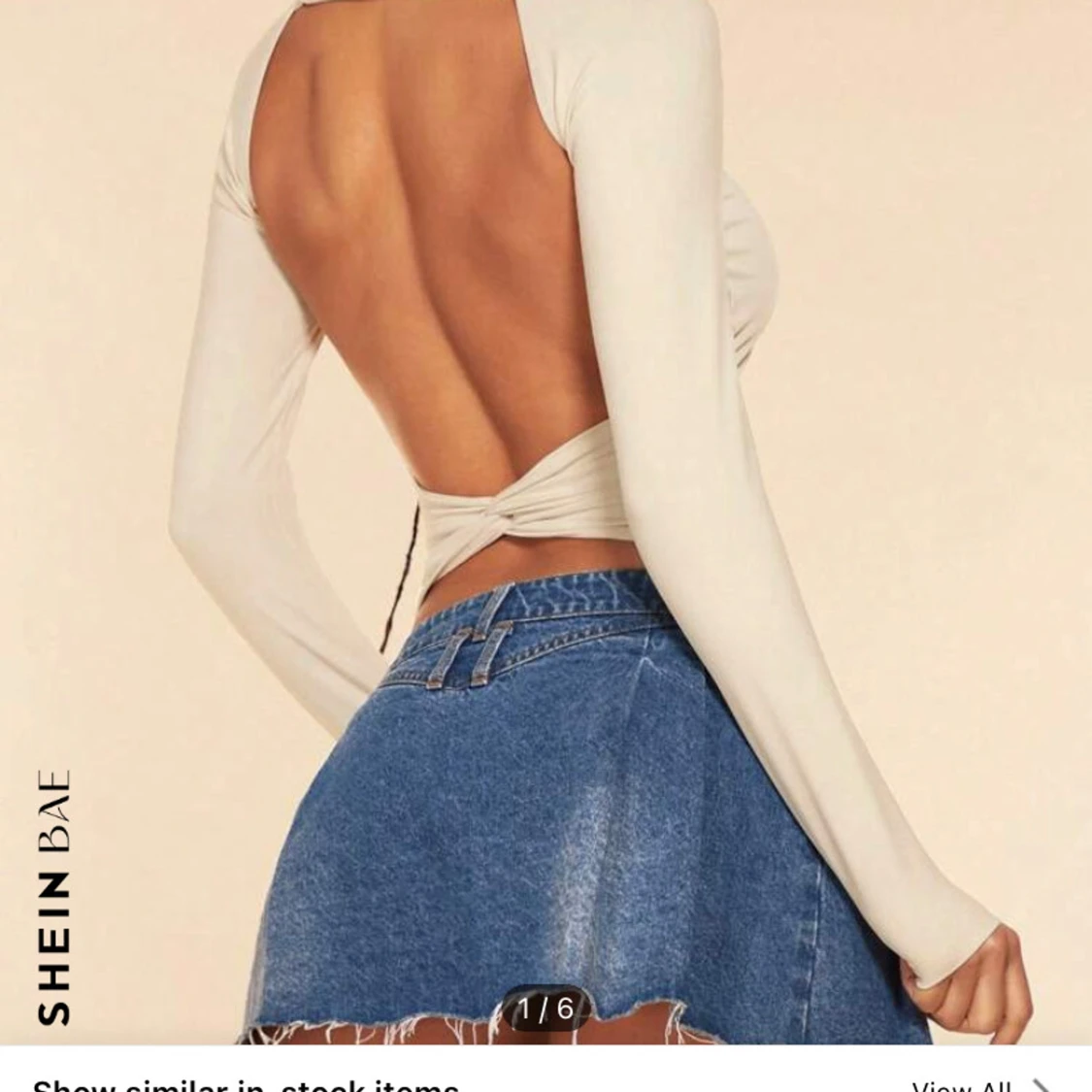 Trendig beige topp från Shein med långärmade och en öppen rygg. Perfekt för en stilren look med en twist. Toppen har en tight passform och är tillverkad i ett mjukt material.