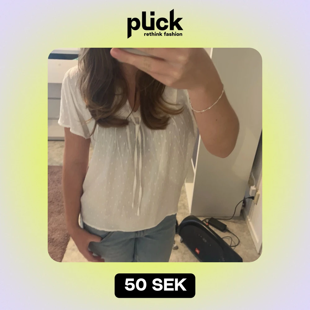 Säljer en söt vit blus som har ett diskret prickigt mönster och som är perfekt för både vardag och fest. Den är luftig och bekväm vilket passar mest för vår och sommar. Kontakta mig vid frågor💕