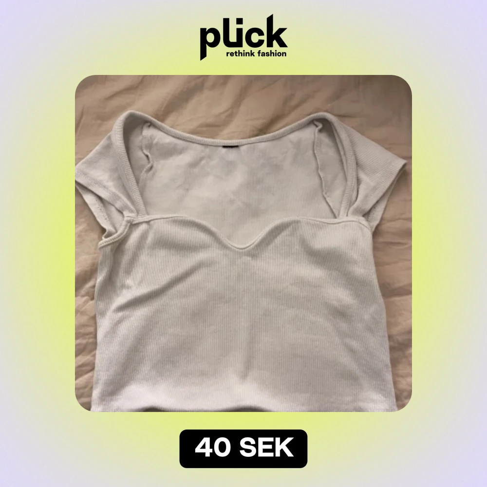 Säljer en superfin vit ribbad topp som är croppad och har en unik offshoulder-design. Perfekt för sommardagar eller en utekväll. Tröjan sitter även ganska tight