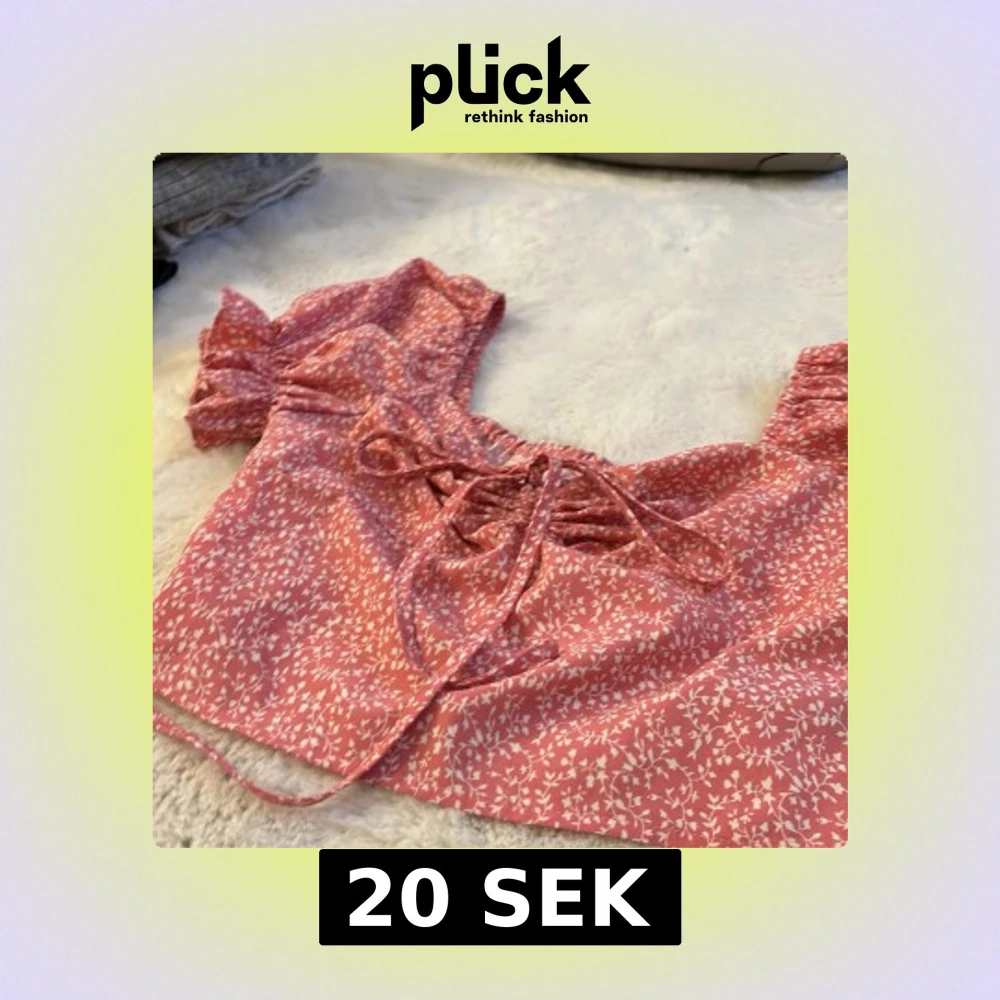 Charmig rosa topp med vita blommor och knytning framtill. Toppen har korta ärmar med volangdetaljer och en söt, feminin stil. Perfekt för varma sommardagar.🩷