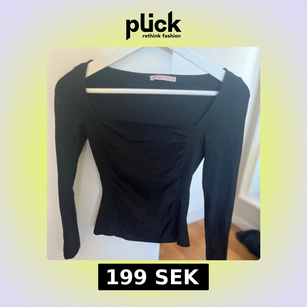 Snygg svart topp från Anna Field med lång ärm och fyrkantig ringning. Toppen har rynkade detaljer framtill som ger en cool och smickrande passform. Aldrig använd.