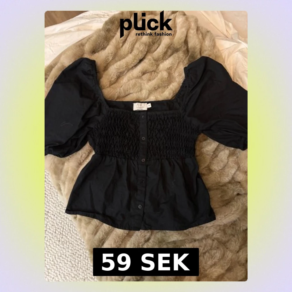 Supersnygg svart blus med puffiga korta ärmar och smockad överdel från AFJ x NA-KD. Blusen har knappar framtill och fyrkantig ringning som ger en trendig vibe. Tillverkad i bomull, perfekt att styla med jeans eller kjol för en cool look.