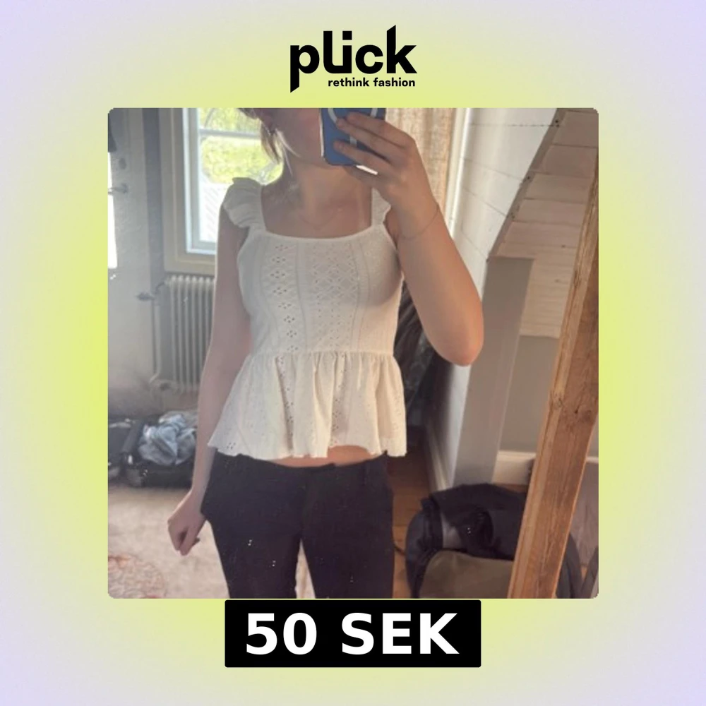 Säljer en söt vit topp med volangärmar och broderade detaljer. Toppen har en öppen rygg med snören! Använd endast några gånger!
