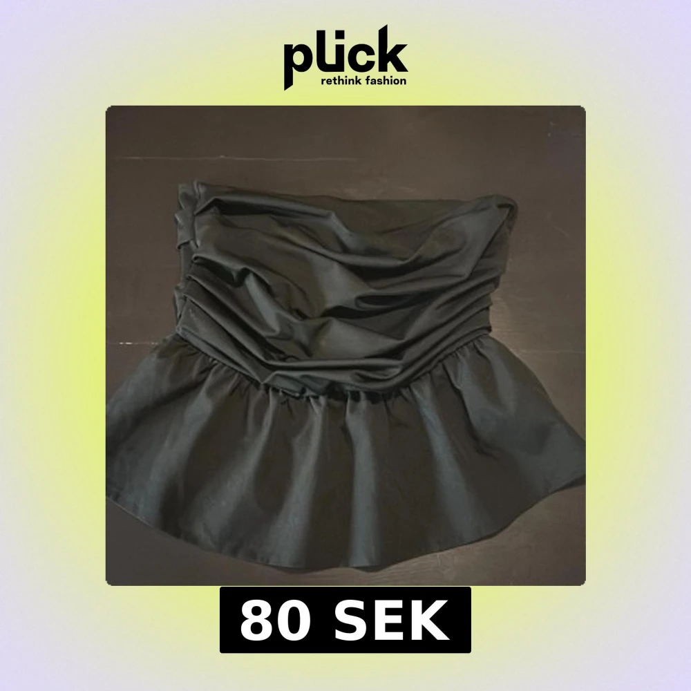 Snygg svart axelbandslös topp med draperad design och volangdetaljer. Perfekt för en stilren och elegant look. Passar bra till både jeans och kjol.