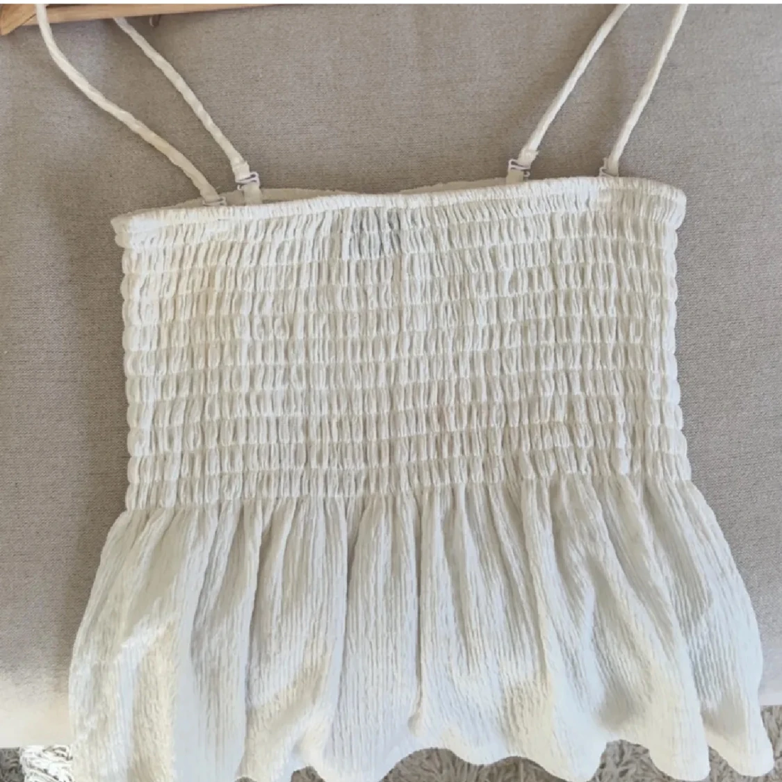 Säljer denna jätte söta topp ifrån Gina tricot som köptes 2023 så den finns inte kvar nu🌸