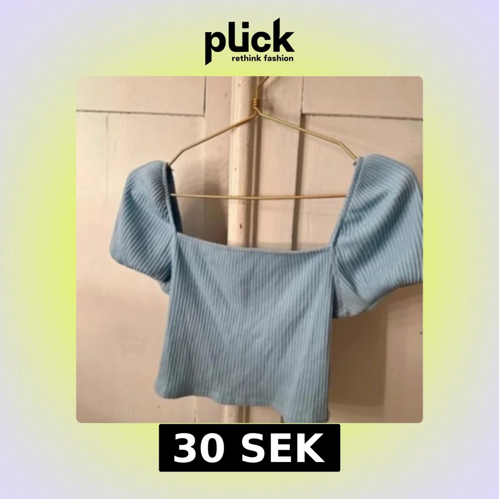 Säljer en söt ljusblå ribbad topp med puffärmar.Använd nån enstaka gång🩵.