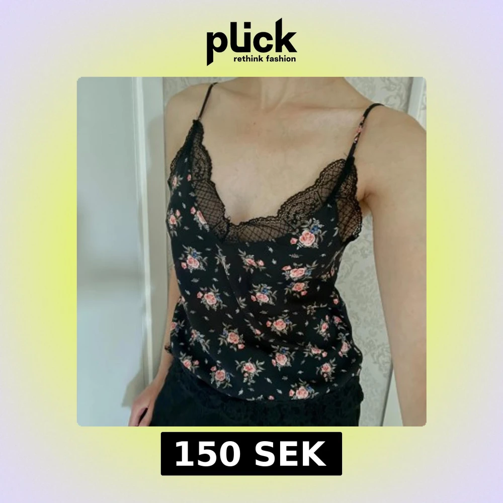 Supersöt svart linnetopp från H&M Divided med tunna axelband och blommigt mönster i rosa och beige. Toppen har v-ringning med dekorativ svart spets och en avslappnad passform. Perfekt för att lyfta vilken outfit som helst!