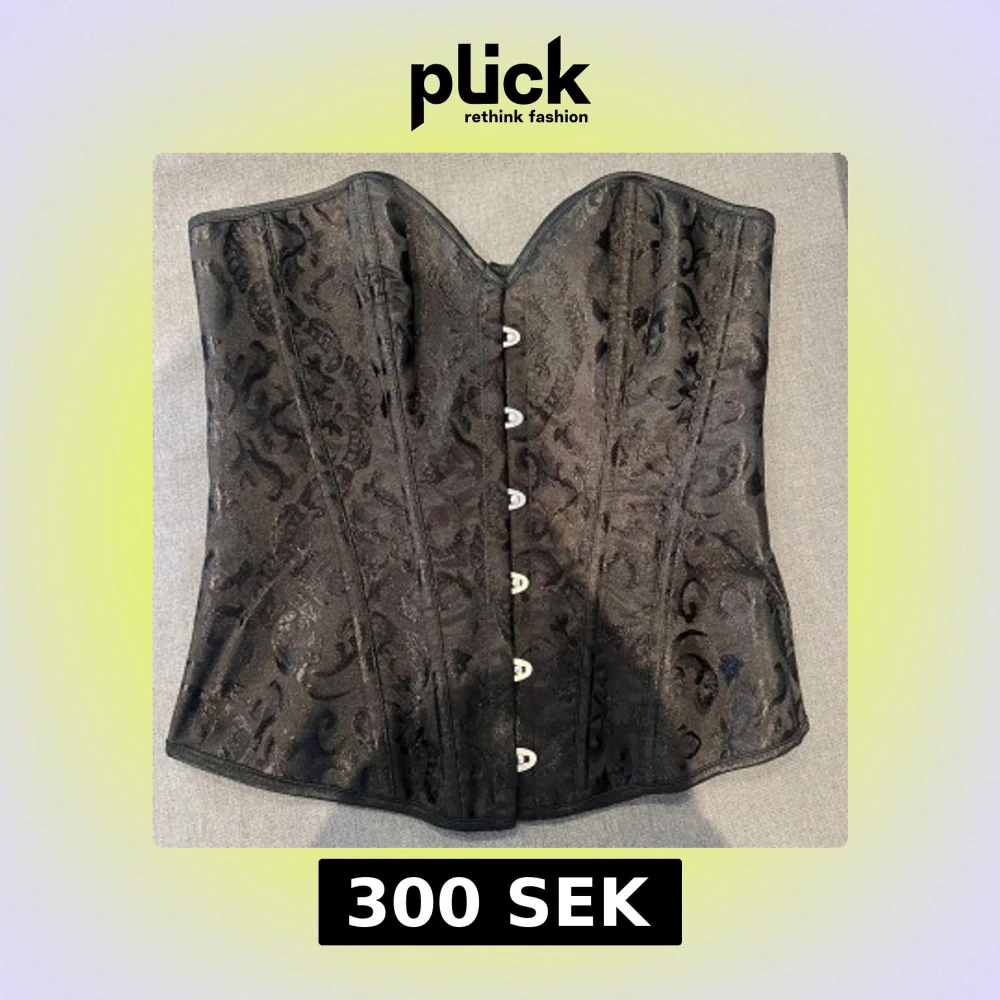 Svart korsett med ett vackert brokadmönster och snörning i ryggen. Helt oanvänd!! Fick hem den i ett samarbete, men den var för liten tyvärr🥲 Den är sjukt fin annars😍