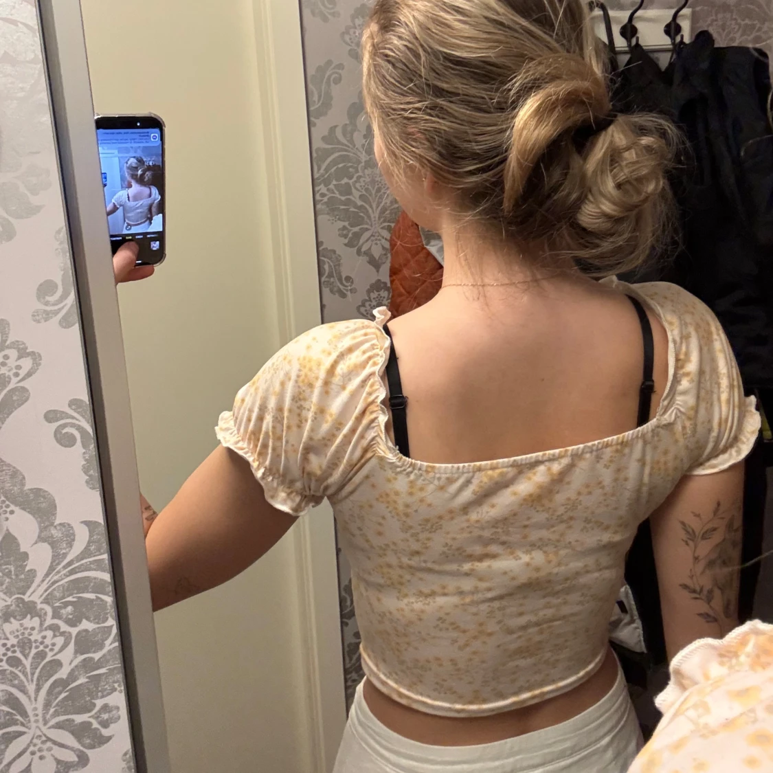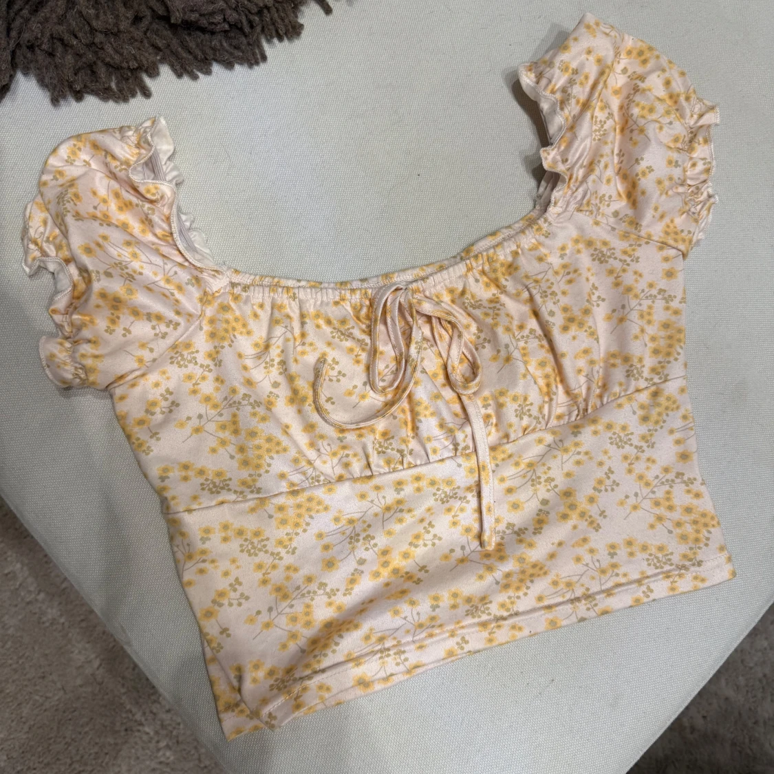Söt blommig sommar topp. Ganska så kort, ingen aning vart den kommer ifrån då det ej finns någon lapp så vet inte storlek men skulle säga xs/s. Knappt använd