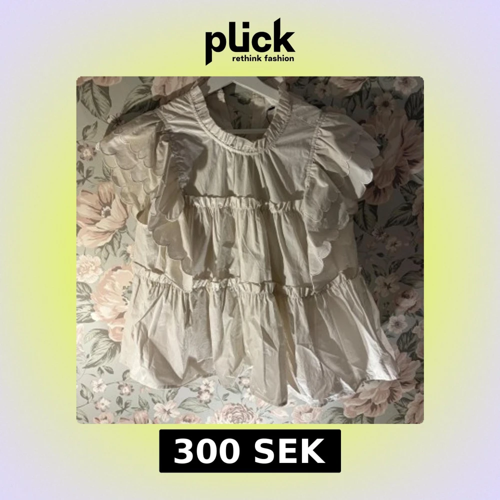 Charmig vit blus med volangdetaljer och korta ärmar. Blusen har en luftig passform och är perfekt för vår och sommar. Aldrig använd och prislappen är kvar, ny pris 700kr☺️