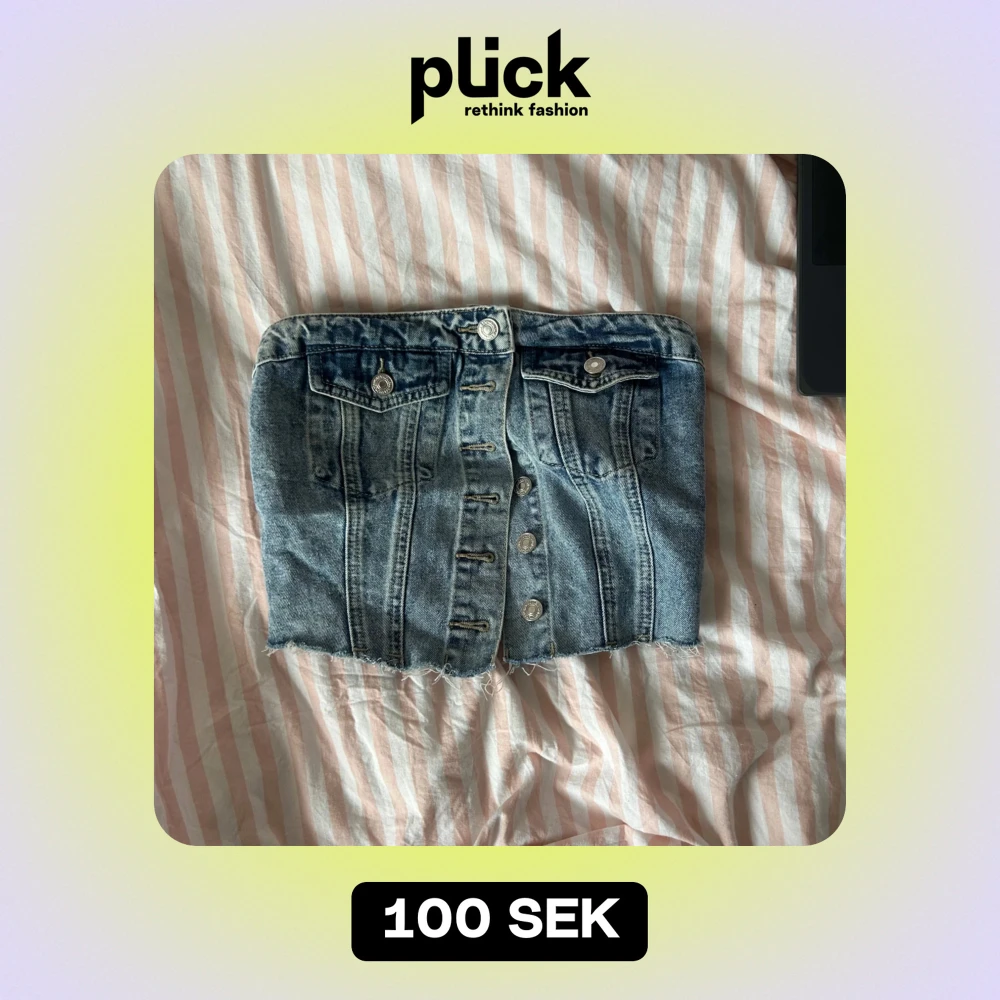 Säljer en cool jeanstopp med knappar framtill. snygg slitning och elastisk detalj baktill för bättre passform.