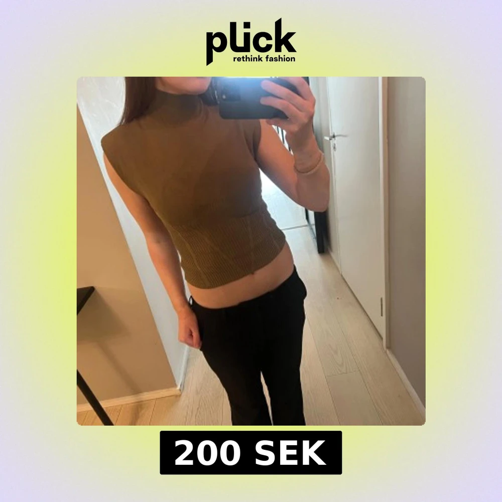 Säljer en brun croppad topp med ribbad struktur och hög hals. Toppen är ärmlös och har en tight passform, Det är bara att skriva till mig om det dygnet upp något frågetecken 💗😇
