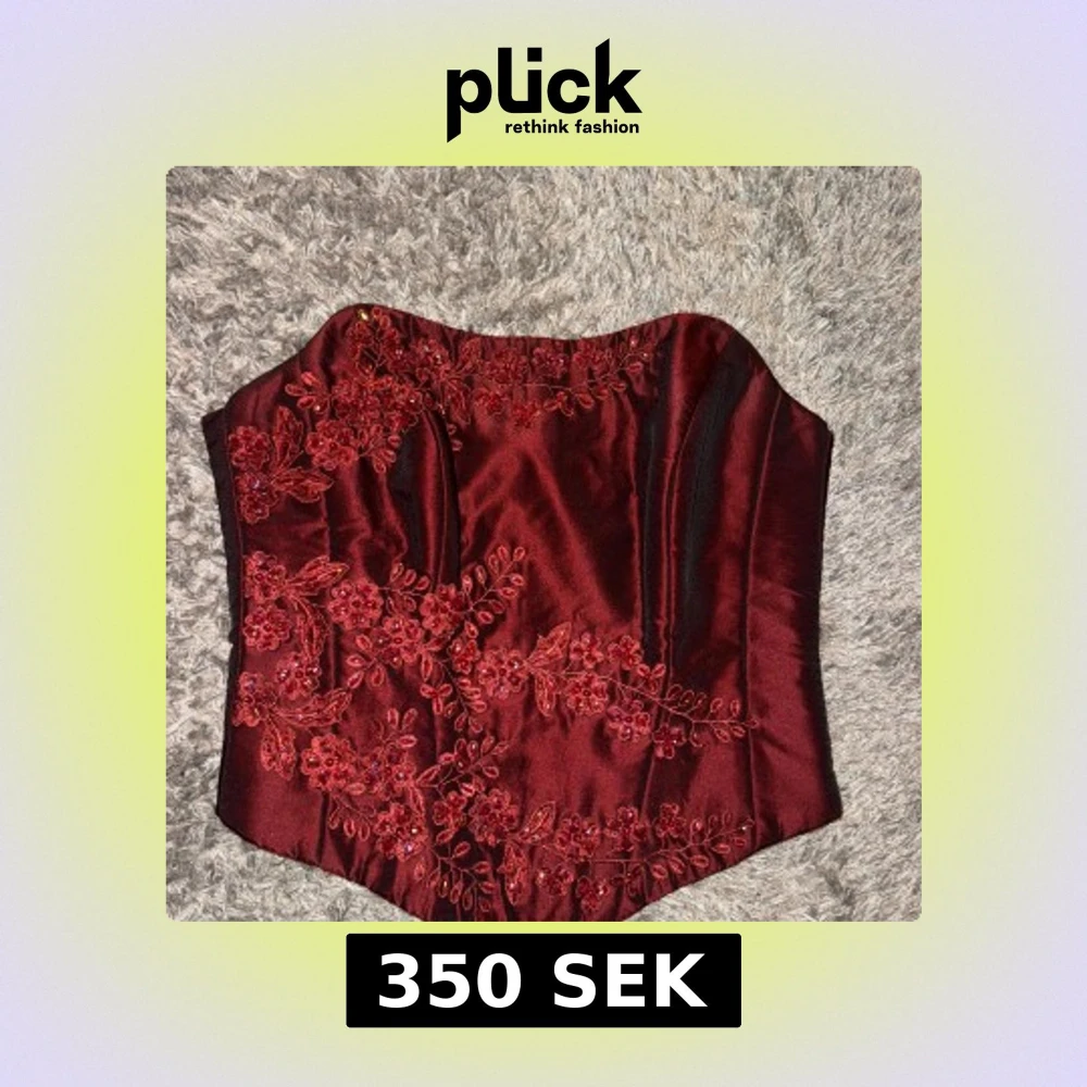 Snygg vinröd korsett med vacker blommig brodyr och detaljer i siden. Använd en gång. Dragkedja bak. Storlek 36/38 alltså S/M pris kan diskuteras och skriv privat ifall du vill ha fler bilder