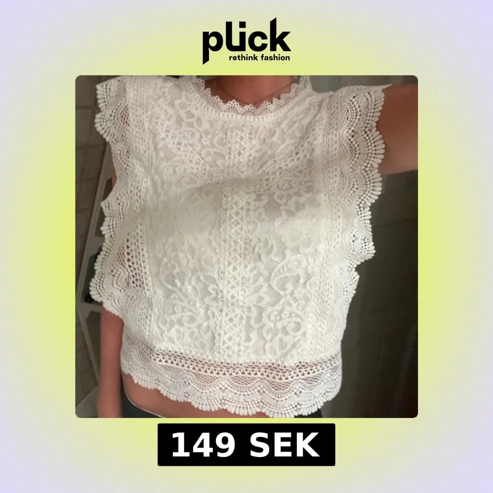 Superfin vit blus i spets med blommigt mönster. Blusen är ärmlös och har en hög, rund halsringning med dekorativ spets. Knappt använd💕💕
