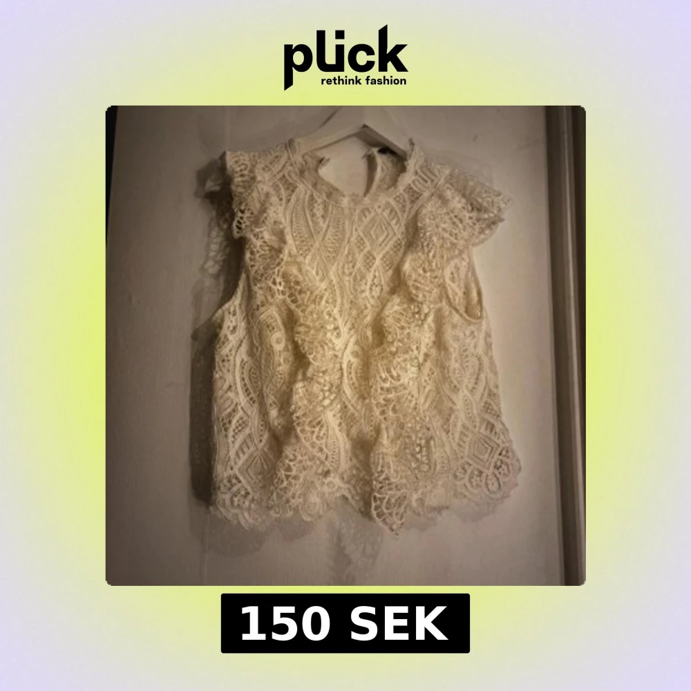 Superfin vit blus i spets med volangdetaljer framtill och längs axlarna. Ärmlös modell med rund halsringning och vackert mönstrad spets. Perfekt för att lyfta vilken outfit som helst!