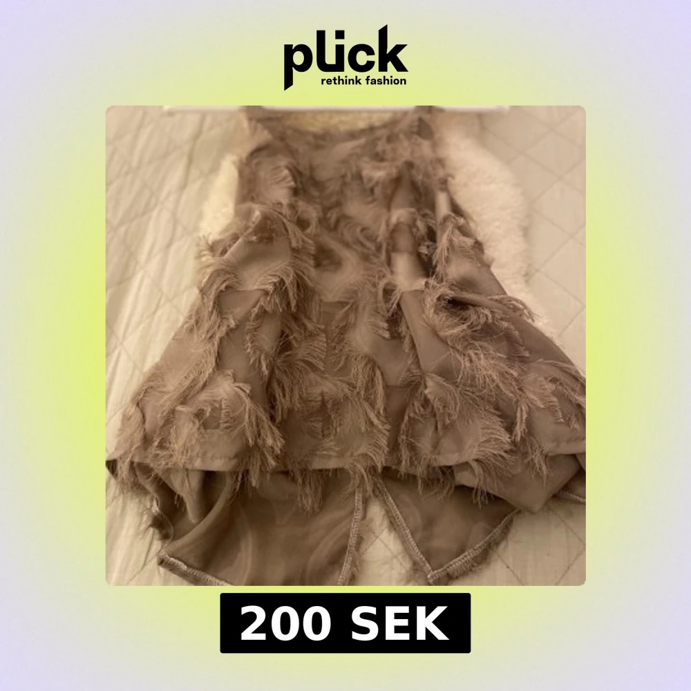 Säljer en beige top med fransdetaljer som ger en cool textur. Klänningen har en lös passform och är ärmlös, perfekt för en trendig look. Den är gjord i ett lätt material som ger en luftig känsla.