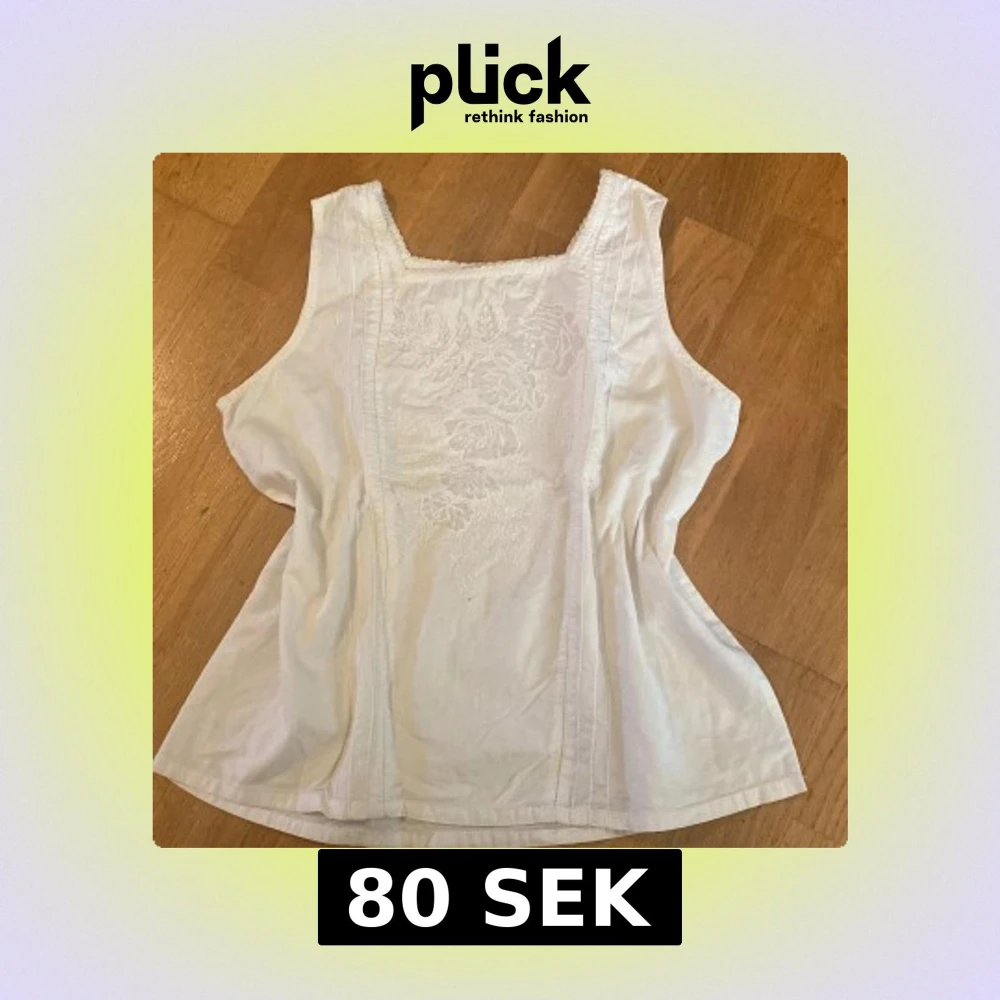 Säljer en vit linnetopp med broderade blommor framtill. Toppen är ärmlös och har en lätt passform med fina sömmar längs sidorna. Toppen har en mjuk, ljus ton. Perfekt för sommarens varma dagar! Står 40 på storlekslappen men jag brukar ha 36💕