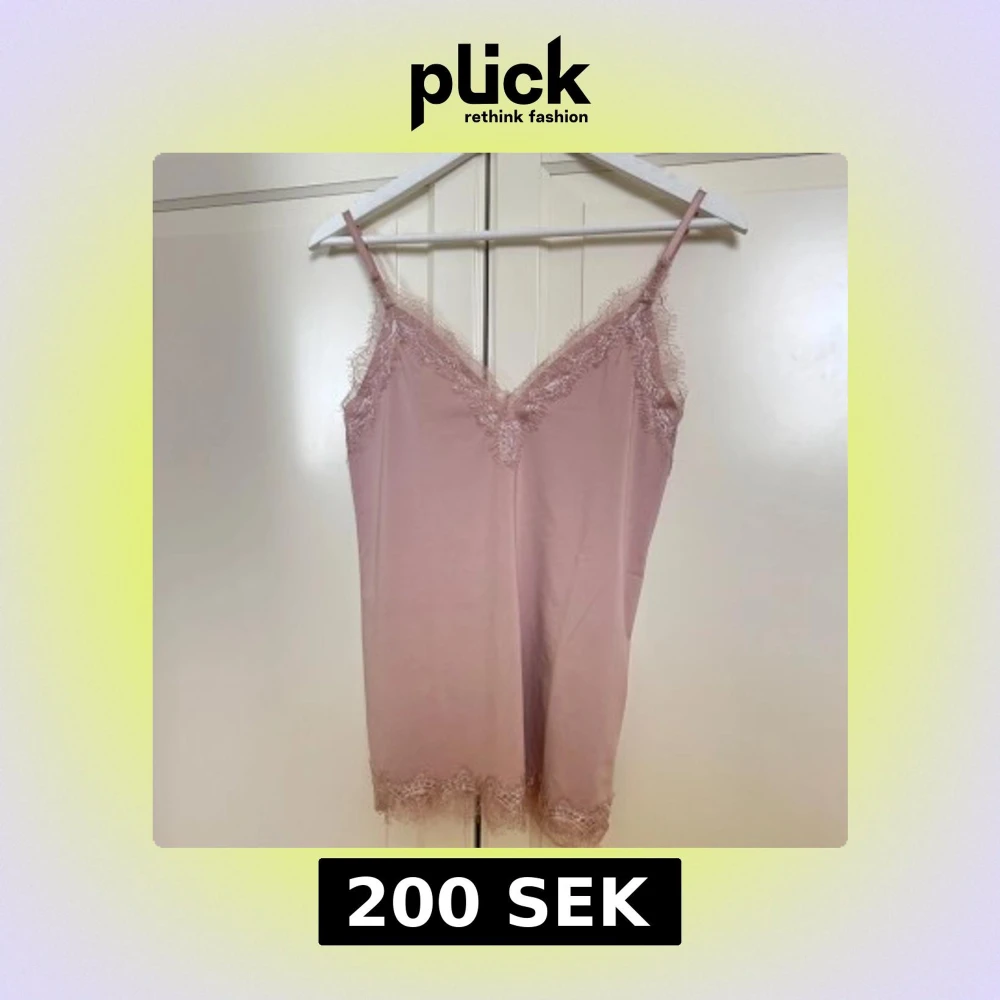 Säljer ett fint ljusrosa linne från Rosemunde med tunna axelband och vacker spetsdetalj längs urringning och fåll. Linnet har en fin siluett och är tillverkad i ett mjukt, glansigt material som känns lyxigt mot huden.