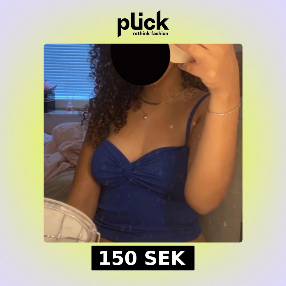Snygg blå croppad linnetopp med smala axelband och en knytdetalj framtill. Perfekt för varma sommardagar eller en kväll ute!