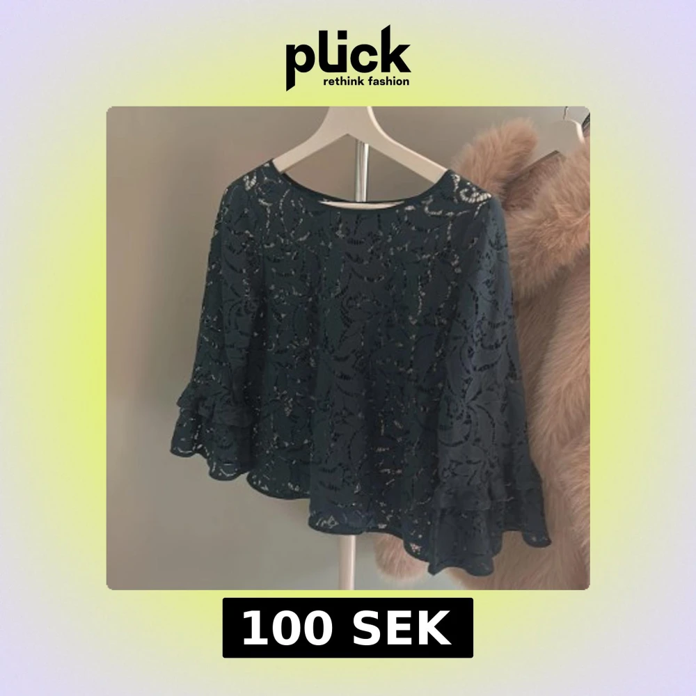 Mörkgrön spetsblus med volangärmar från Part Two