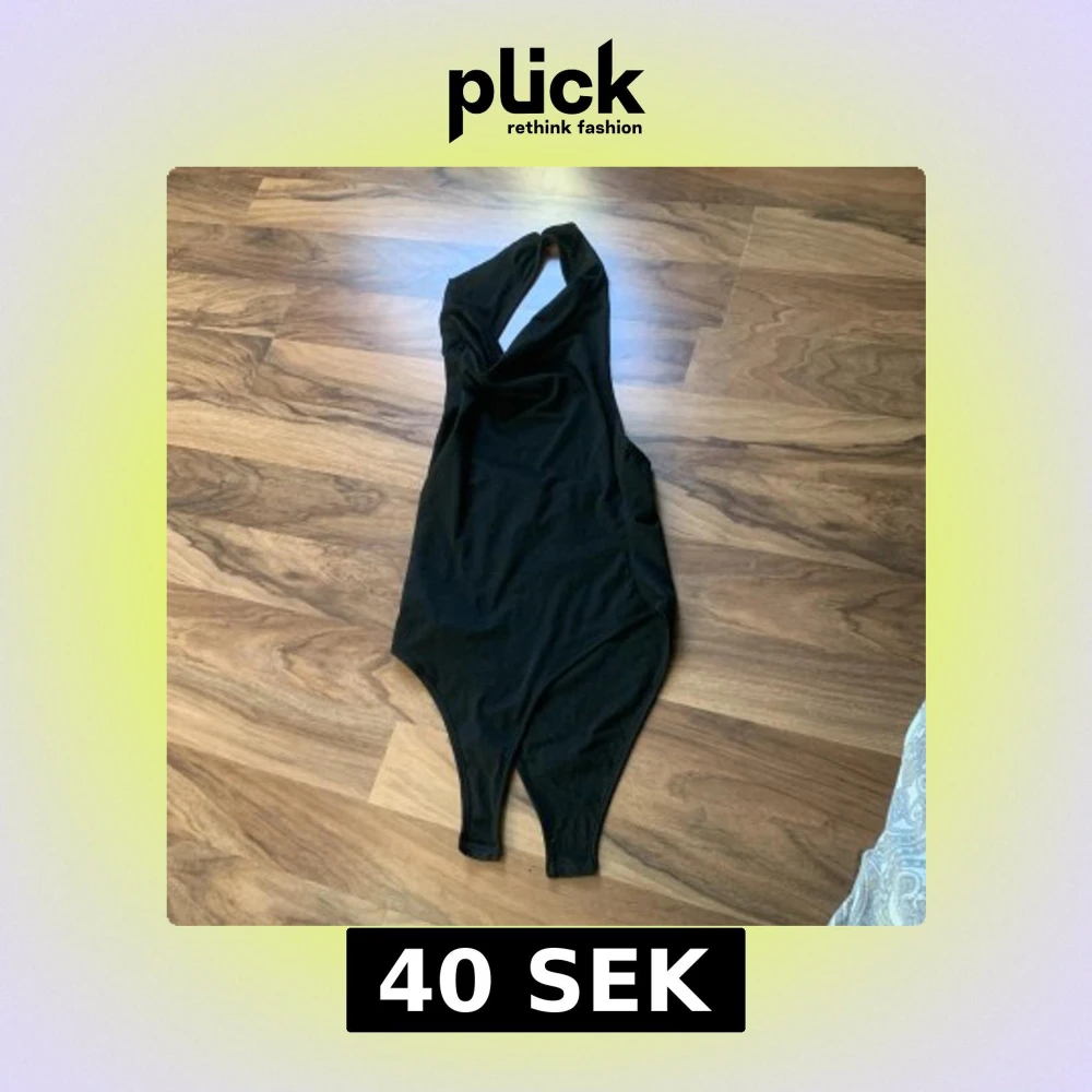 Snygg svart bodysuit med halterneck och ärmlös design. Perfekt för att styla med jeans eller kjol. Mjuk och stretchig känsla, passar dig som gillar minimalistisk look och vill ha något som sitter tight och bekvämt.