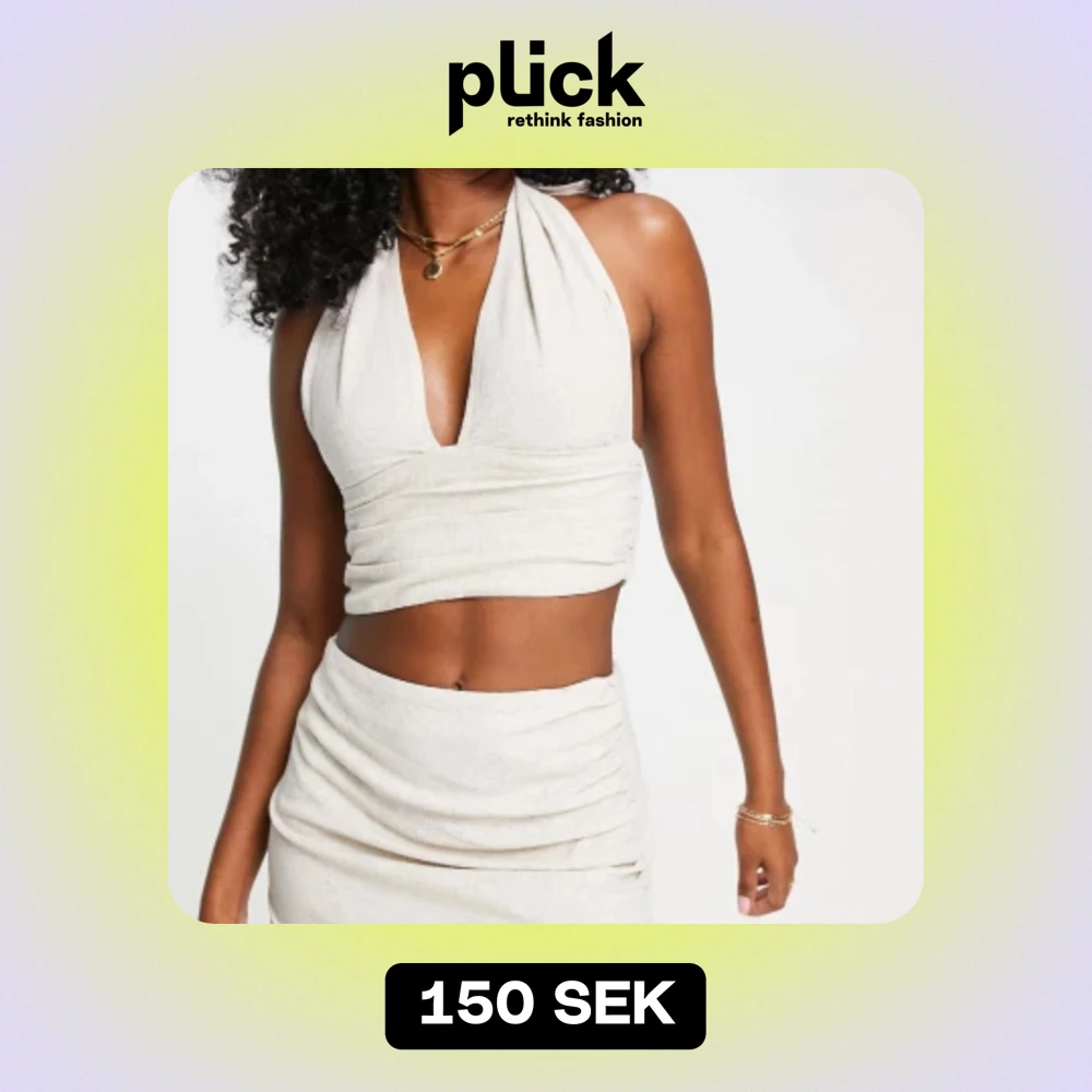 Helt ny linne topp med knytning i halsen och öppen rygg! Supersnygg, storlek 36 men skulle säga att den passar en XS, 34, bättre.