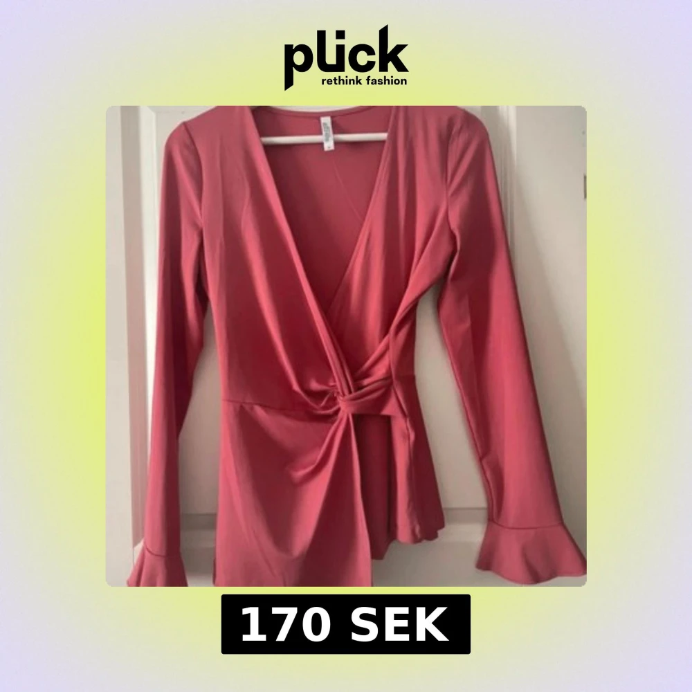 Säljer en snygg omlottopp med långa ärmar och volangdetalj vid ärmsluten. Toppen har en knytning i midjan och djup v-ringning. Perfekt för dig som vill ha en trendig och feminin look.