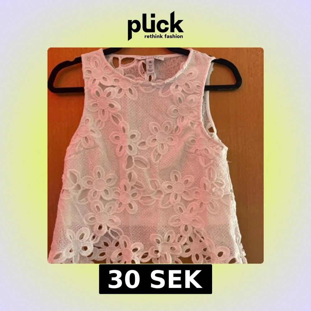 Säljer en vit blus från NLY Trend i storlek 36. Blusen har ett blommigt spetsmönster med genombrutna detaljer och är ärmlös. Perfekt för dig som gillar romantisk och feminin stil. Materialet känns lätt och luftigt, och blusen har en rund hals.