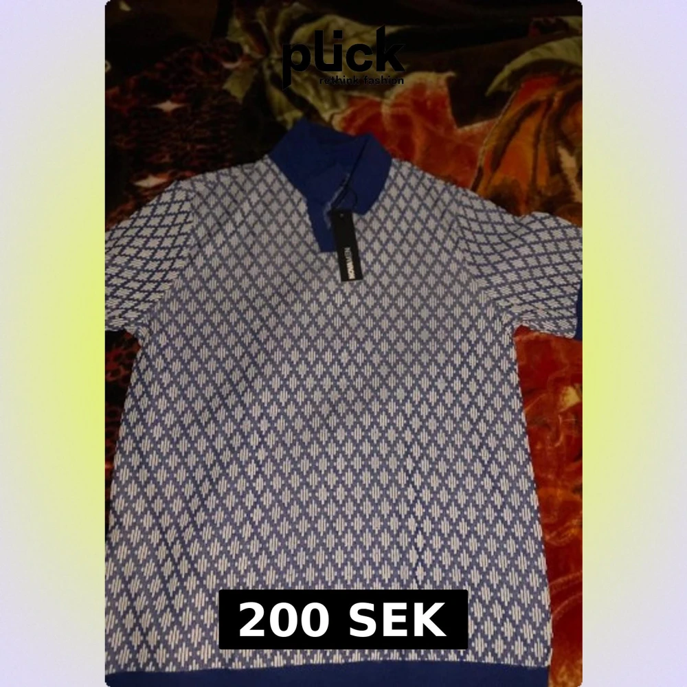 Säljer en snygg polotopp från New Moon i blått och vitt med ett rutigt mönster. Toppen har korta ärmar och en klassisk polokrage i marinblått. Perfekt för dig som gillar stilrena och grafiska detaljer.