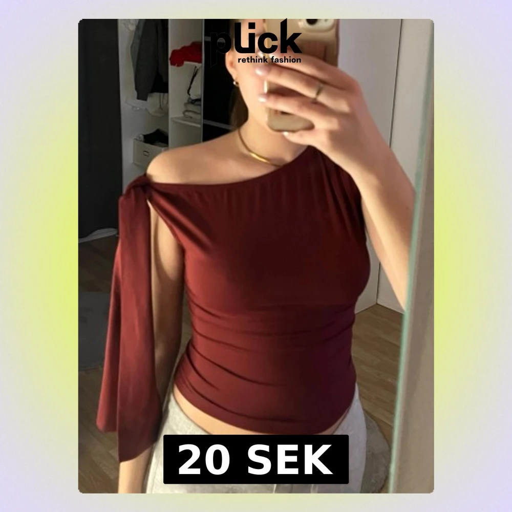 Säljer en vinröd oneshoulder topp med snygg knyt-detalj på ena axeln. Toppen är tight och har en croppad passform.