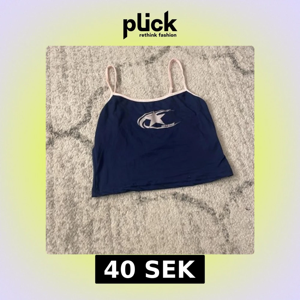 Säljer ett mörkblått linne med tunna rosa axelband och en vit stjärnlogga framtill från MFPSHIF. Toppen har en croppad passform och är perfekt för dig som gillar sportig stil. Materialet känns lätt och skönt mot huden.