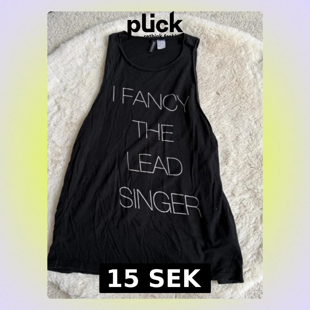 Svart ärmlös linnetopp från Divided by H&M med vit text 'I FANCY THE LEAD SINGER' framtill. Toppen har en loose passform, perfekt för en avslappnad och cool stil. Obs mindre i strl skulle säga passar S