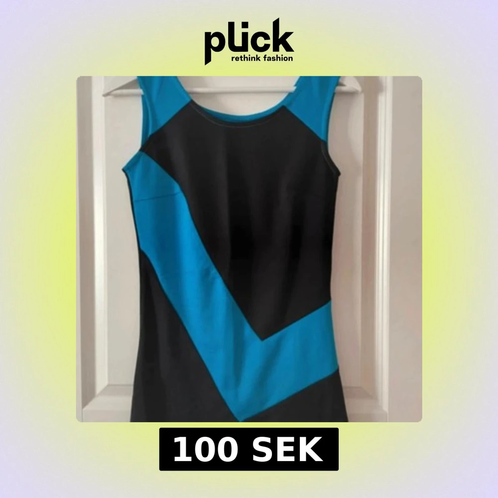 Säljer en ärmlös topp från Orsay i svart och blått med snyggt grafiskt mönster.