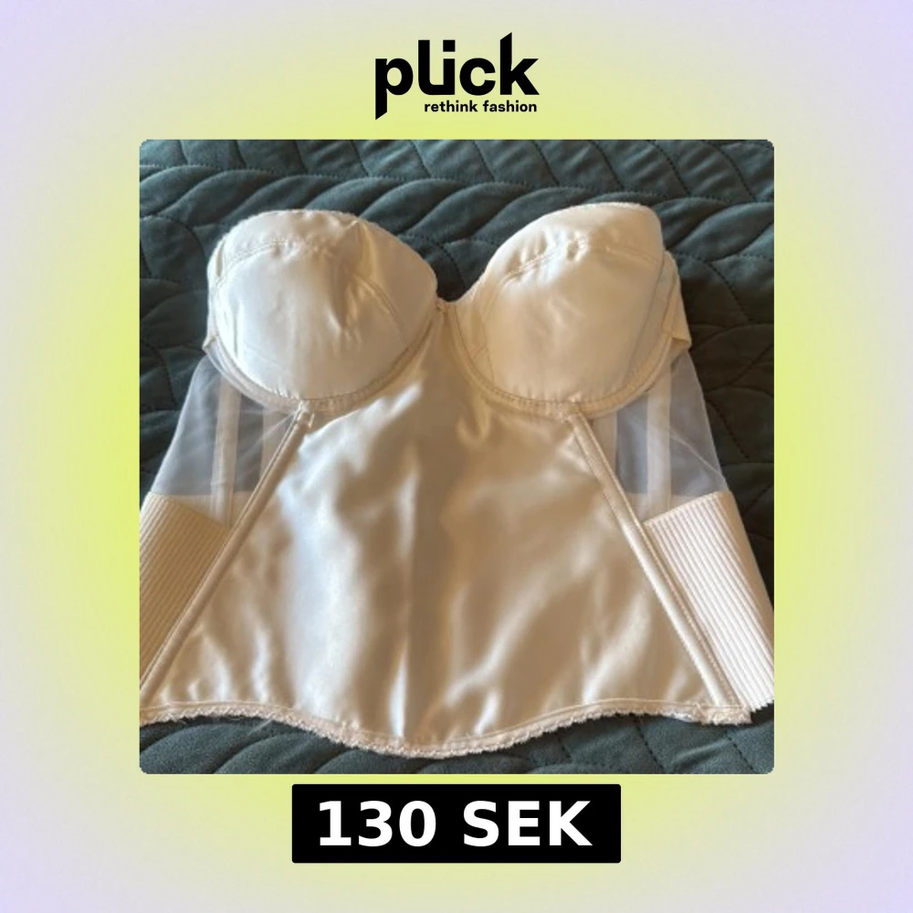Snygg ivoryfärgad korsett med vadderade kupor, meshpaneler på sidorna och slät satin framtill. Baksidan har breda elastiska band och hakknäppning. Perfekt för att skapa en snygg siluett under klänningar eller toppar.