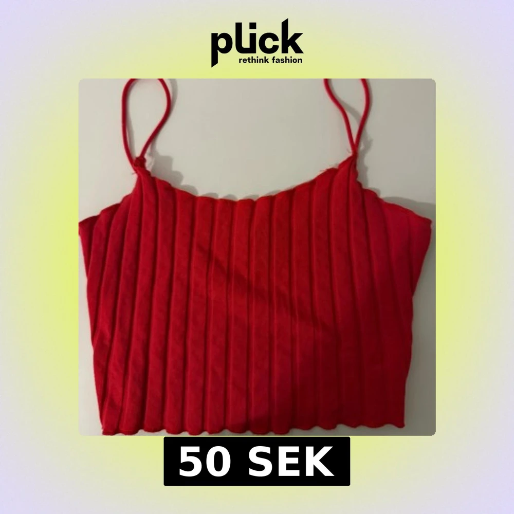 Snygg röd linnetopp med smala axelband och ribbad struktur. Perfekt för varma dagar eller att styla lager på lager.