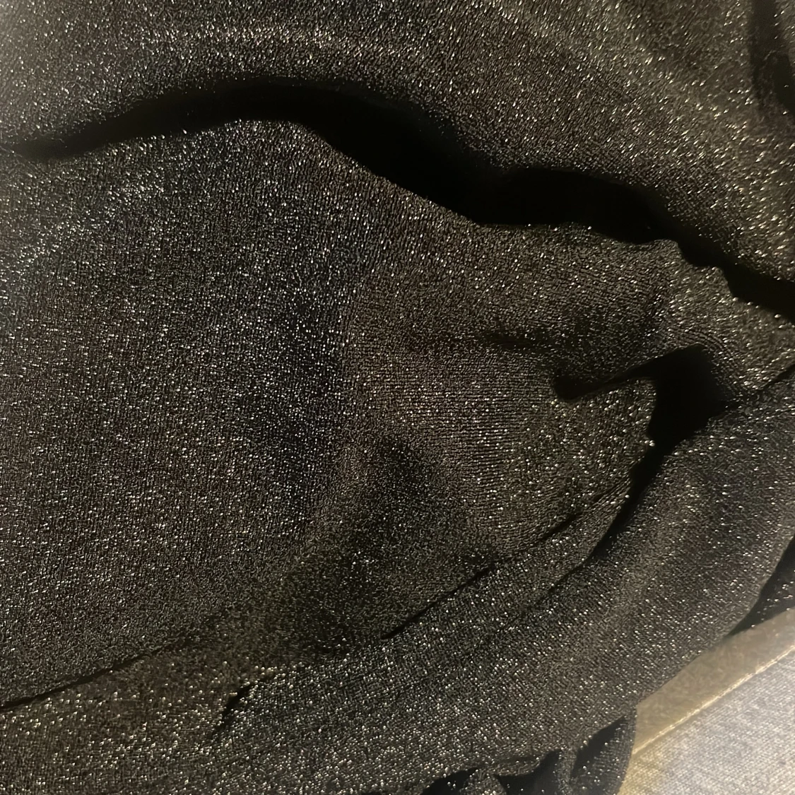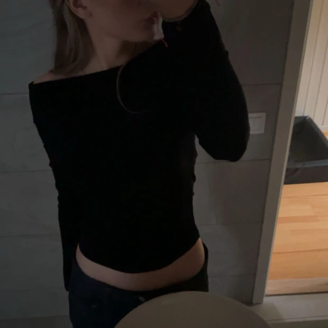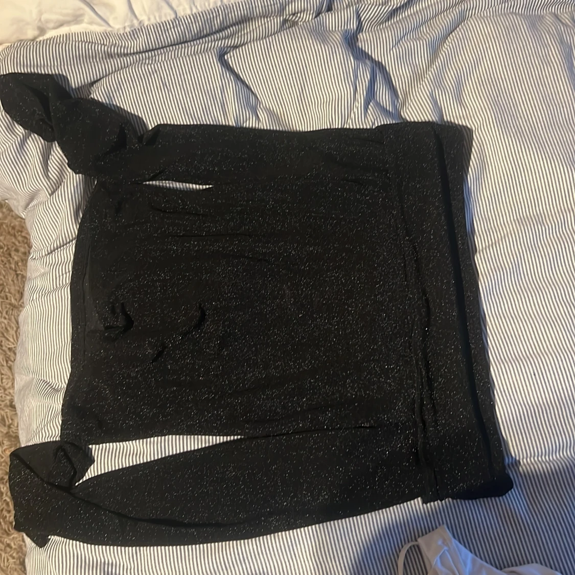 Säljer en svart glittrig offshoulder topp med lång ärm. Snygg croppad passform som sitter tight och framhäver axlarna. Materialet är mjukt och stretchigt med en skimrande yta som syns extra bra i ljuset. Perfekt för dig som gillar att sticka ut med lite glitter, nyårs topp!!!
