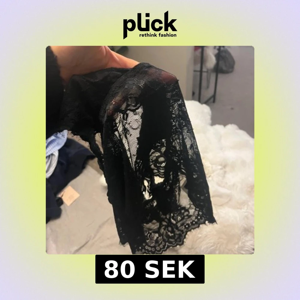 Säljer en svart linnetopp i genombruten spets med blommigt mönster. Toppen har breda axelband och v-ringning, samt fina vågiga kanter nertill och vid axelbanden. Perfekt för dig som gillar en feminin och trendig look💕💕
