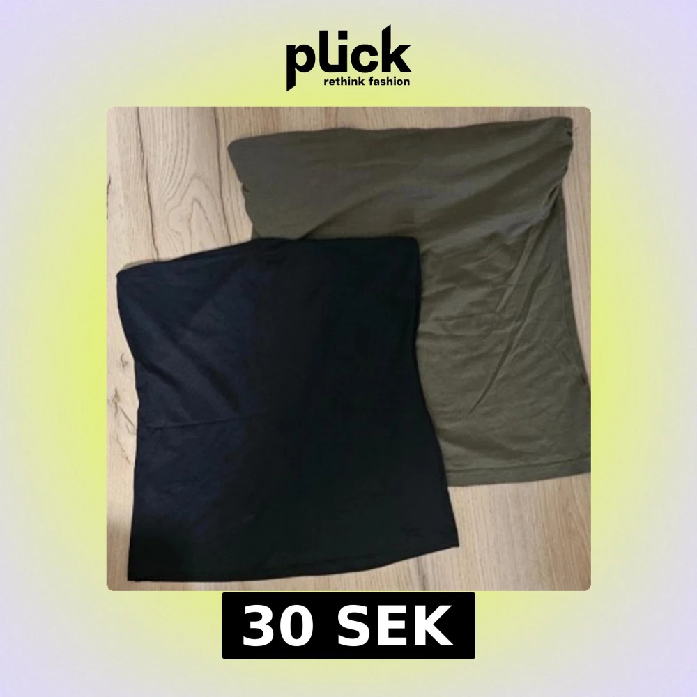 Säljer två enkla och stilrena tubtoppar, en i svart och en i olivgrön färg. Perfekta att matcha med jeans eller kjol för en avslappnad look. Mjukt material som sitter skönt mot kroppen.