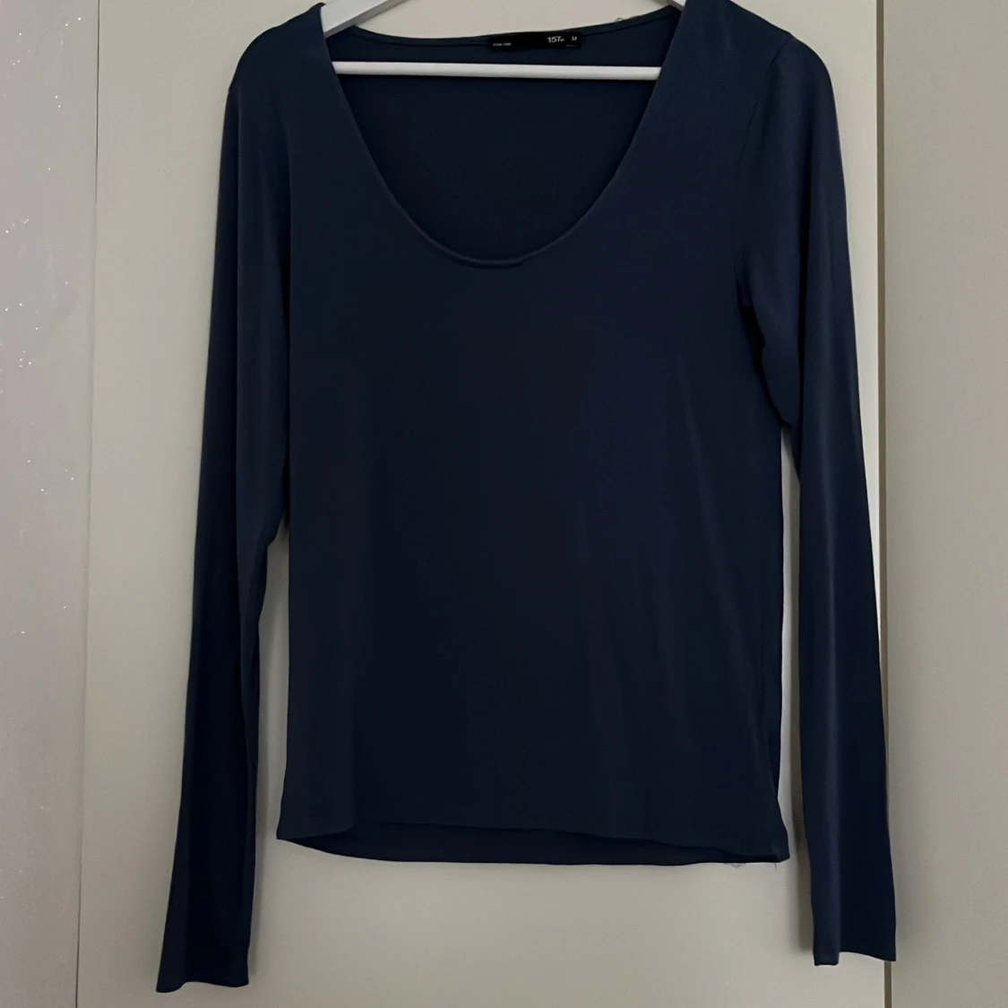 Bild 1 – 80 kr Stilren marinblå tröja, helt oanvänd – nypris var betydligt högre! Bild 2 – 60 kr Snygg och bekväm tröja, använd få gånger men fortfarande i toppskick. Bild 3 – 50 kr Fräsch ljusblå tröja från Lager, storlek M. Perfekt basplagg! Bild 4 – 40 kr Svart tröja från Gina Tricot, storlek M. Har ett litet hål vid axeln men syns knappt – annars jättefin! Bild 5 – 200 kr Helt nya jeans från Gina Tricot, storlek 36 (sitter lika bra på 38 då de är pösiga). Aldrig använd