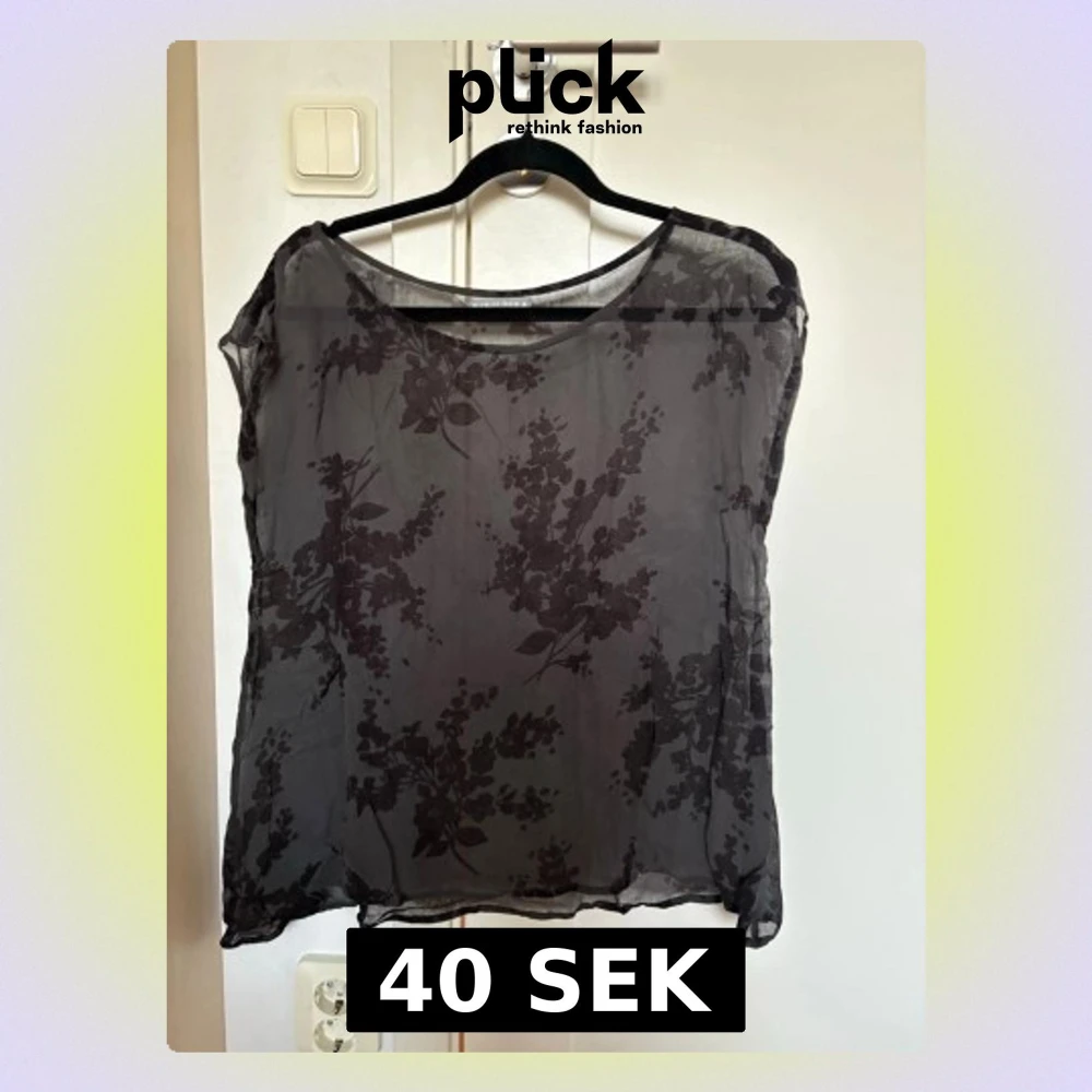 Säljer en svart transparent blus med blommigt mönster. Tunn och luftig, vilket gör den skön att bära.