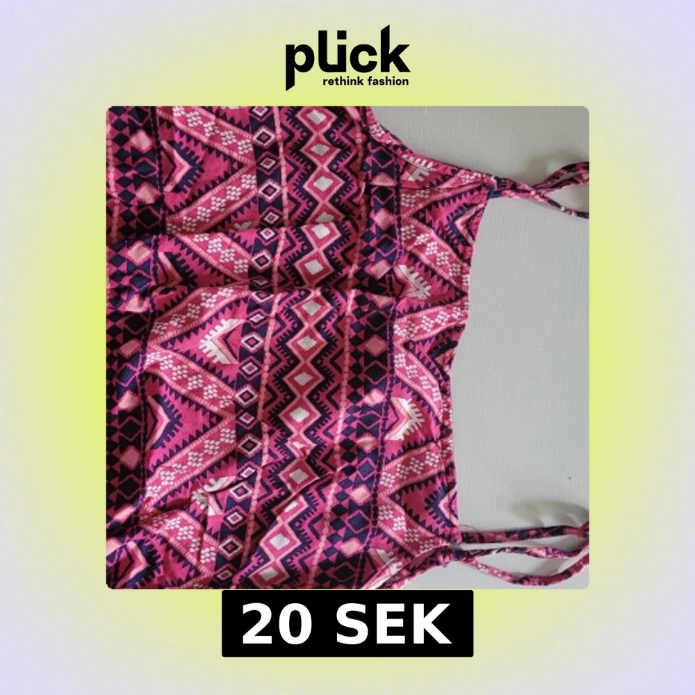 Säljer ett färgglatt linne från H&M Divided i storlek 38. Linnet har tunna axelband och ett coolt geometriskt mönster i rosa, mörkblått och vitt. Perfekt för varma dagar och ger en riktigt skön sommarkänsla.