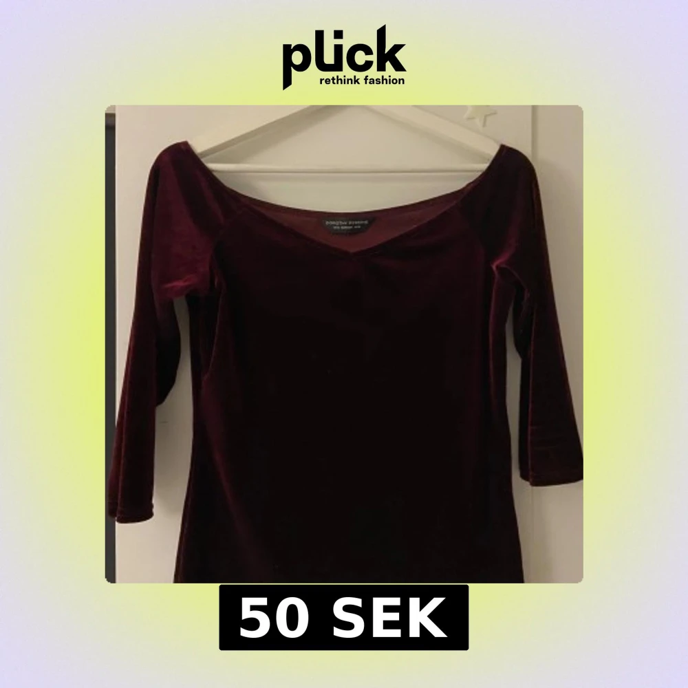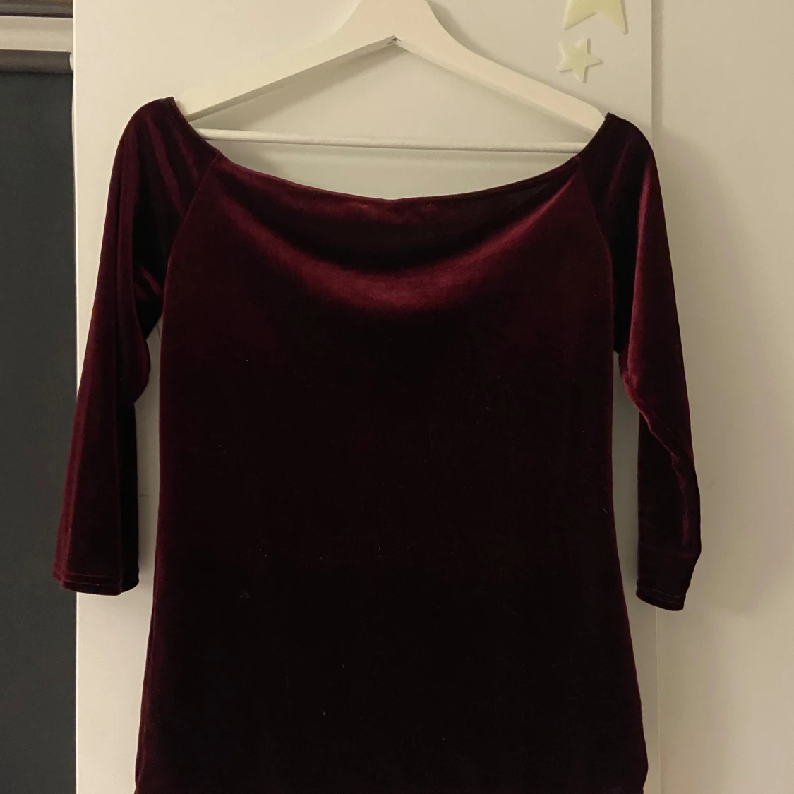 Snygg vinröd topp i mjuk sammet från Dorothy Perkins. Den har en elegant v-ringning och trekvartsärmar, perfekt för en stilren look. Passar utmärkt till både jeans och kjol.