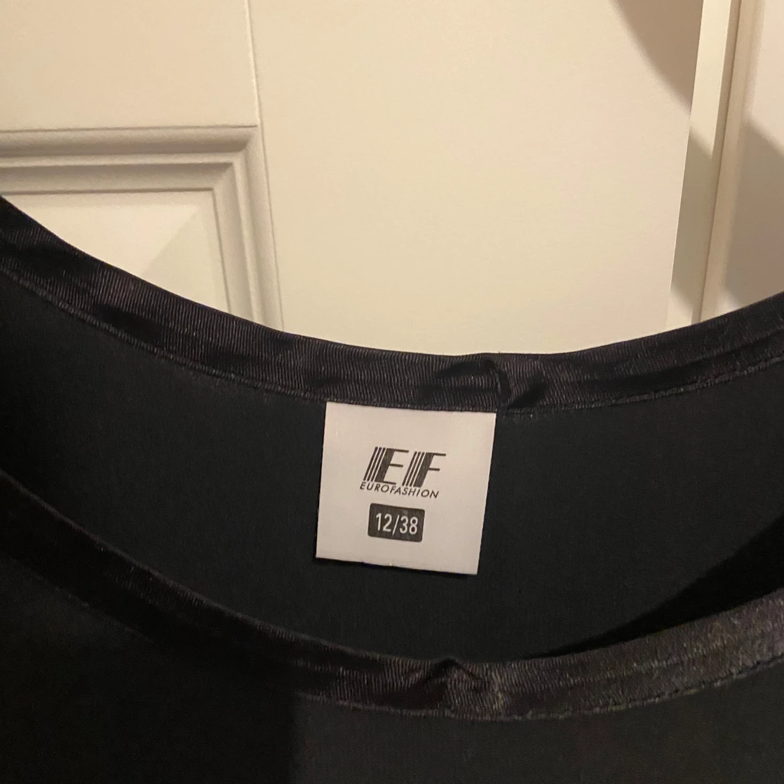 Snygg svart linnetopp från Euro Fashion i ett glansigt material. Perfekt för en stilren look. Toppen har en enkel design med rund halsringning.