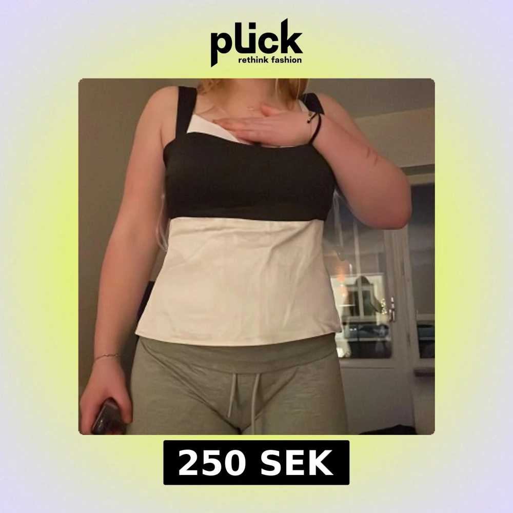 Snygg korsett i svart och vitt med breda axelband och dragkedja bak. Perfekt för en stilren look.