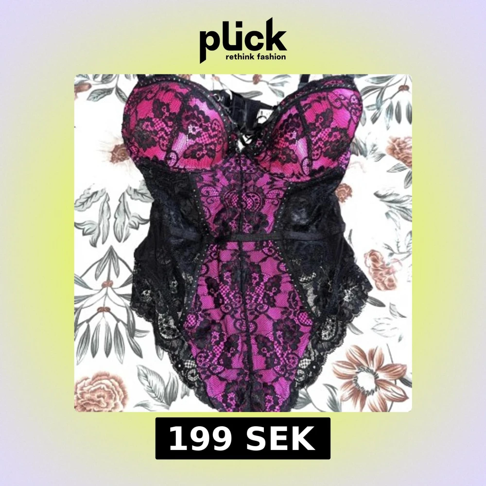 Elegant korsett i svart och rosa med spetsdetaljer. Den har justerbara axelband och en hakknäppning bak. Perfekt för en speciell kväll. HELT OANVÄND!!